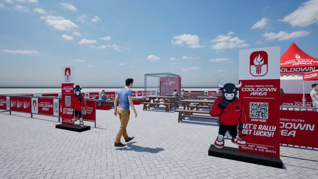 Taruna Merah Putih Cooldown Area 2026 is here as a recovery and recharge space amidst the vibrant energy of Soekarno Run 2026. This area is specially designed for runners and visitors who want to lower their heart rate, stretch their muscles, and enjoy a moment of togetherness after crossing the finish line.